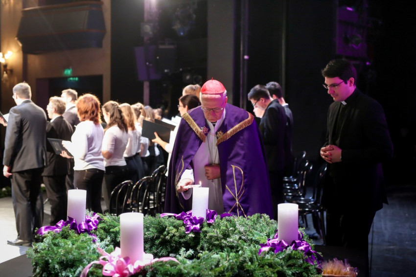 Az esemény, melyen több mint kétszáz fő vett részt, az első adventi gyertya meggyújtásával kezdődött. A fényliturgiát Erdő Péter bíboros, prímás vezette, a szertartáson elmondott beszédét teljes terjedelmében közöljük: